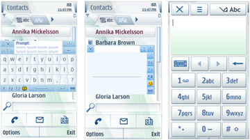 Which input methods are available for the user depends on the product. The user is able to select suitable input method for the situation from those input methods that are included in the product. System recalls which method was used last and offers that next time when the user wants to input something. One key in each input method layout is reserved for the switching between methods.