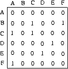The adjacency_matrix class implements the BGL graph interface using the traditional adjacency matrix storage format. For a graph with V vertices, a V x V matrix is used, where each element aij is a boolean flag that says whether there is an edge from vertex i to vertex j. Figure 1 shows the adjacency matrix representation of a graph.