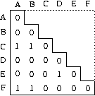 The advantage of this matrix format over the adjacency list is that edge insertion and removal is constant time. There are several disadvantages. The first is that the amount of memory used is O(V2) instead of O(V + E) (where E is the number of edges). The second is that operations that traverse all the out-edges of each vertex (such as breadth-first search) run in O(V2) time instead of O(V + E) time for the adjacency list. In short, it is better to use the adjacency_matrix for dense graphs (where E is close to V2) and it is better to use adjacency_list for sparse graphs (where E is much smaller than V2). The adjacency_matrix class extends the traditional data-structure by allowing objects to be attached to vertices and edges using the same property template parameters supported by adjacency_list. These may be bundled properties or standard (backward-compatible) interior properties. The types of all property values must be Copy Constructible, Assignable and Default Constructible. In the case of an undirected graph, the adjacency_matrix. class does not use a full V x V matrix but instead uses a lower triangle (the diagonal and below) since the matrix for an undirected graph is symmetric. This reduces the storage to (V2)/2. Figure 2 shows an adjacency matrix representation of an undirected graph.