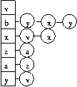 V = {v, b, x, z, a, y } E = { (b,y), (y,v), (z,a), (b,x), (x,v) } G = (V, E) |