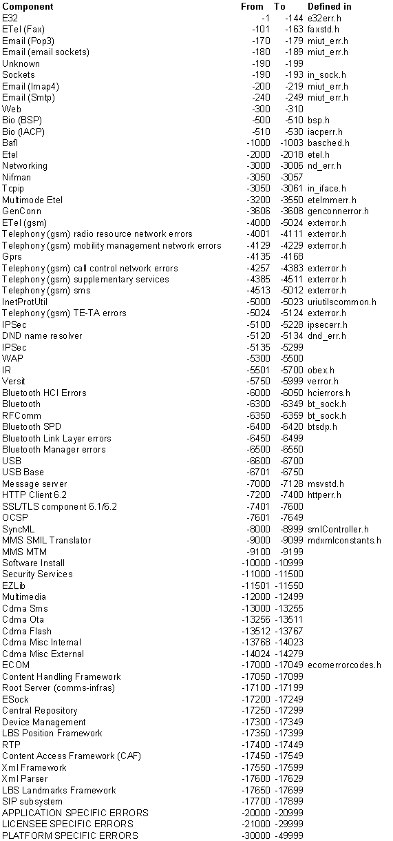 A spreadsheet containing many of the Symbian OS error codes is attached below: