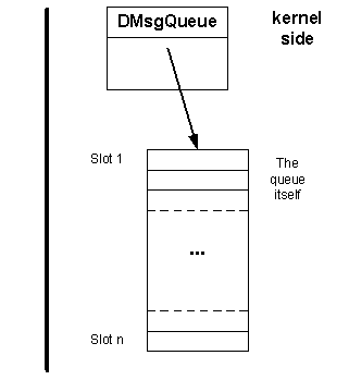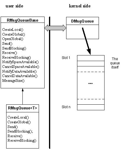 kernel side object, to which the reader and the writer can open a handle, a RMsgQueue