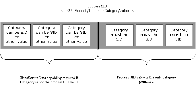 The general rule is that the (category) UID must be the same as the Security ID (the SID) of the process in which the code that is performing the define operation is running. In effect, this forms a data cage, preventing a process from defining, or "occupying", another process's property.