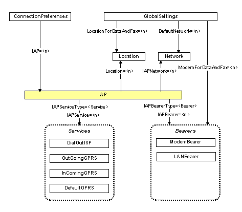 Notice the central role of the IAP table. You can think of it as a table of network connection definitions. For example, for a connection to a specified internet provider, your wireless device must