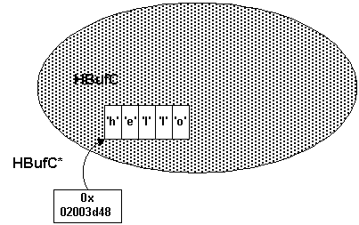 'h', 'e', 'l', 'l', 'o', '\0'. A function such as strlen()