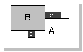 A window is moved to the front (i.e., to the foreground) by giving it an ordinal position of 0. The diagram below shows windows A, B and C, but window B has now been given an ordinal position of 0. A’s position has been incremented to 1, and C’s remains as 2.