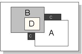 The diagram below shows the same three windows as above, except that window B now contains a child window, D. Window D’s ordinal position is 0, relative to its parent window, B.