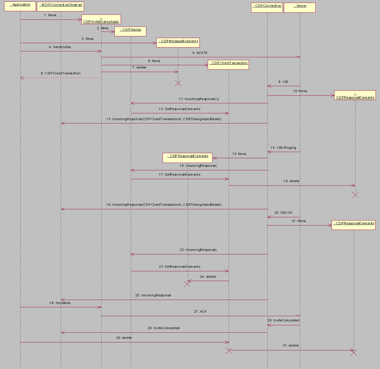 The following diagram shows the recommended order for deleting SIP Client API objects.