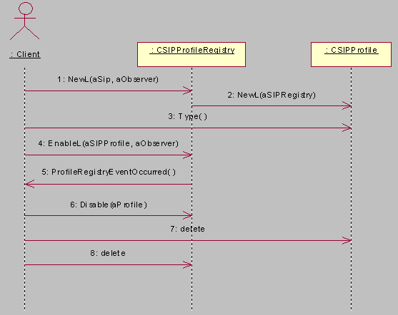 After a profile is enabled and registered, the client can use it to create SIP sessions using the SIP Client API. Enabling the profile also guarantees that it will not be removed from the system while being used by the client.