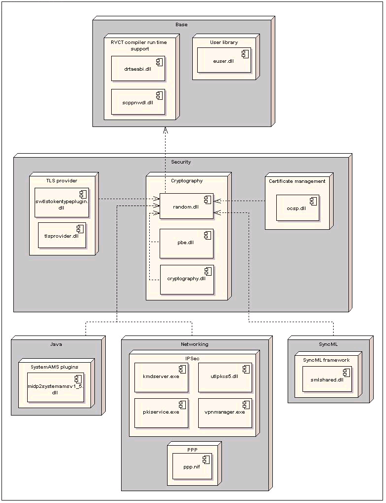 The diagram below shows the inter-dependencies between random.dll and the components it exports to or imports from.